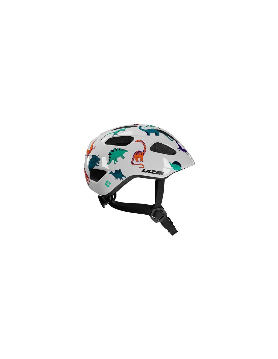 Hjälm Lazer Pnut 2.0 KinetiCore Dinosaurs +Grönt spänne (Turnfit) 46-52cm