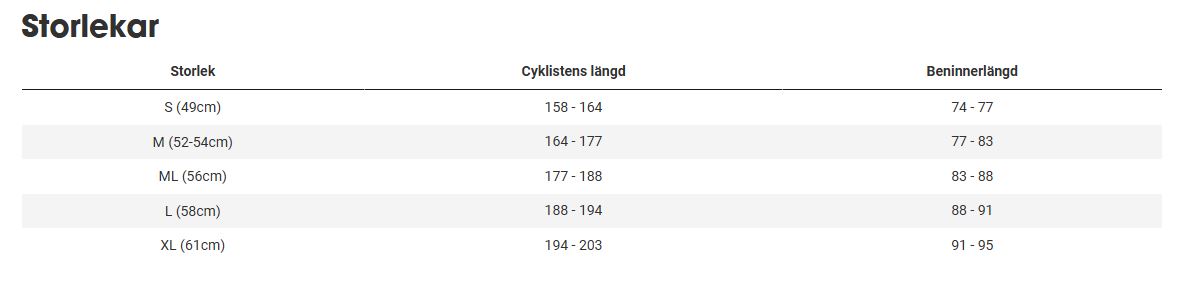 - ML - 12.74 kg / 28.09 lbs (med TLR-tätning, inga slangar, exklusive bakre pakethållare)